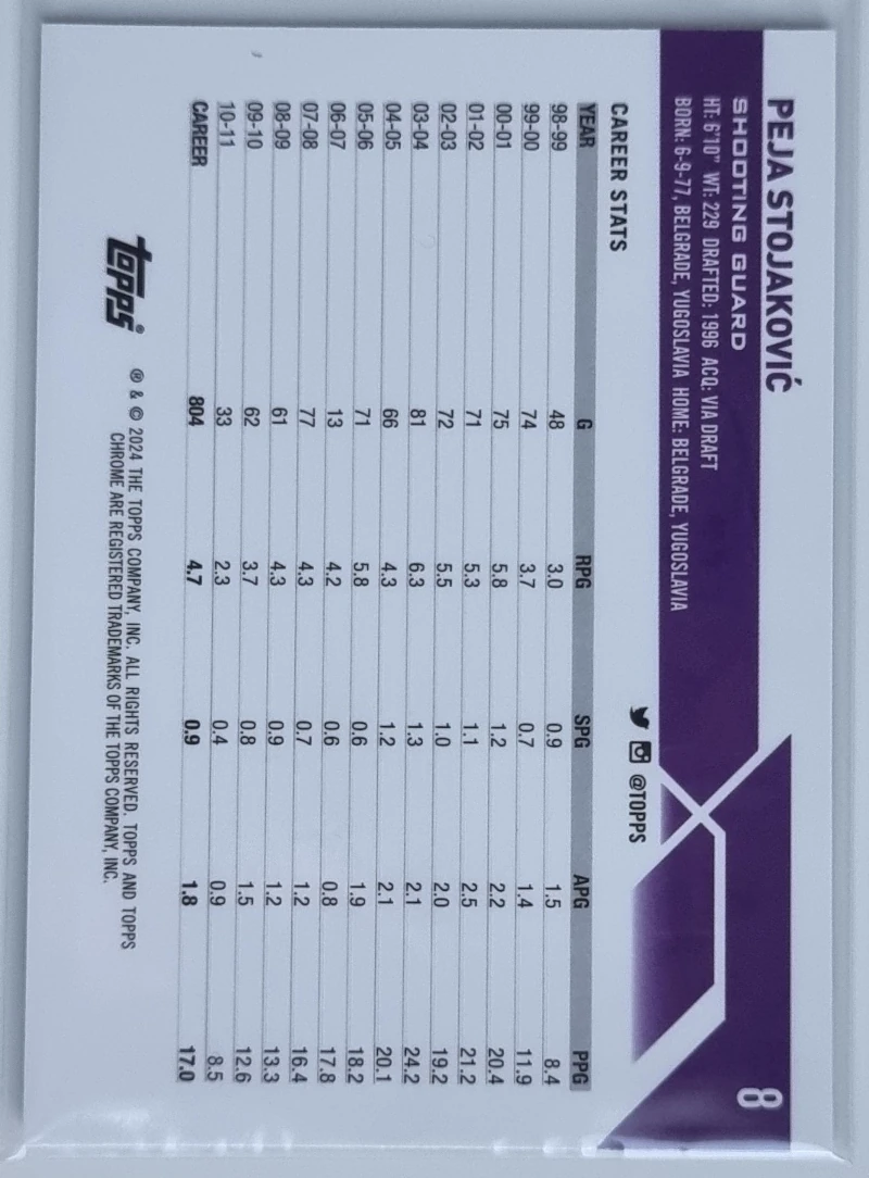 • 2023-24 Topps Chrome Blue Basketball Refractors #8 Peja Stojakovic