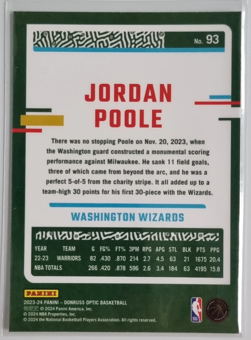 2023-24 Donruss Optic #93 Jordan Poole
