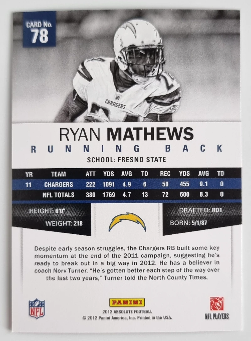 2012 Absolute Retail #78 Ryan Mathews