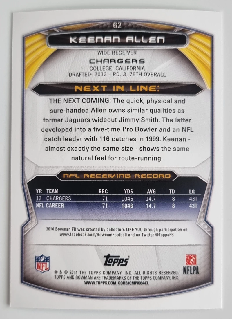 2014 Bowman #V62 Keenan Allen