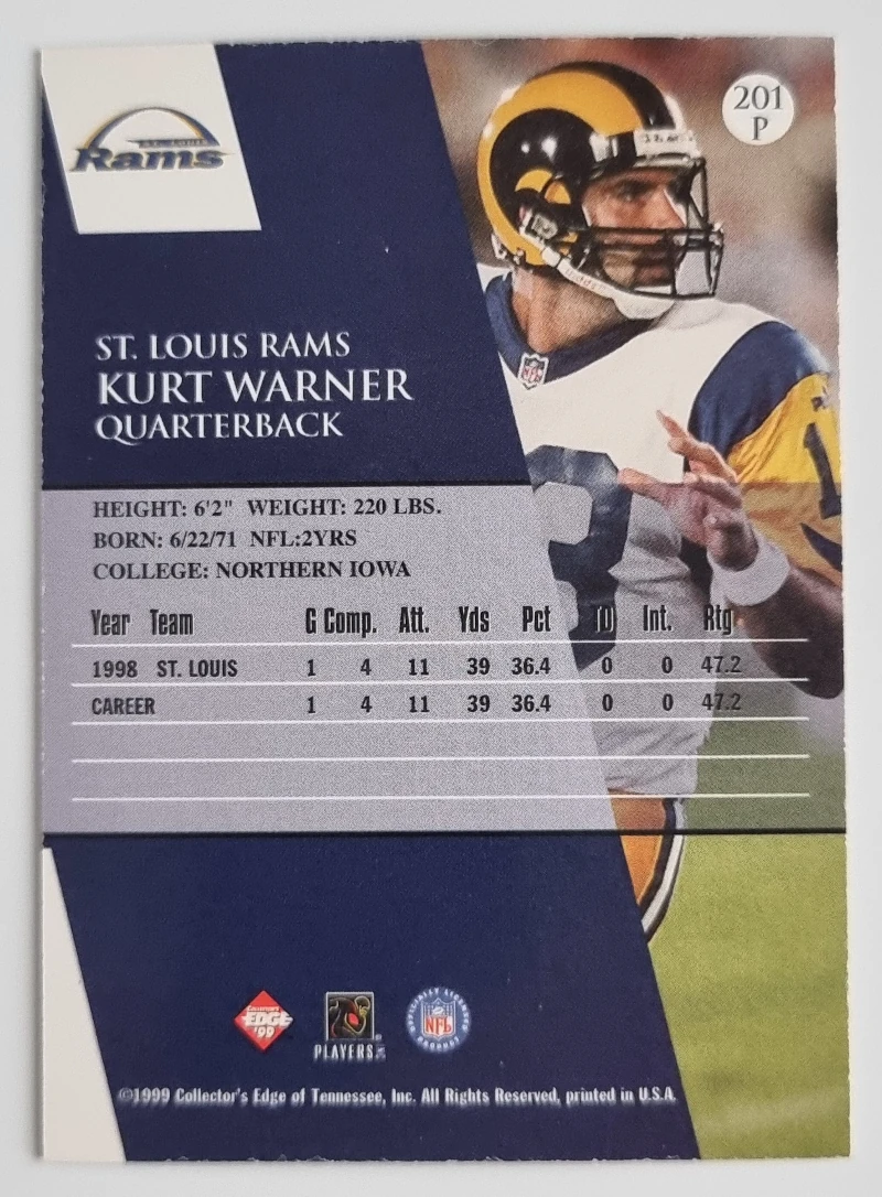 1999 Collector’s Edge First Place #201PG Kurt Warner Promo Gold