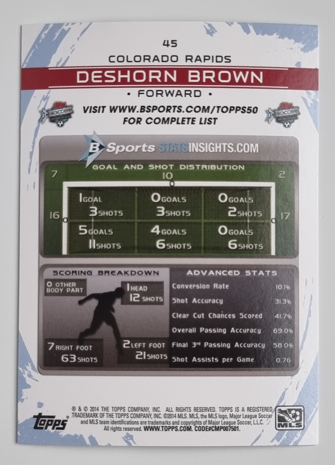• 2014 Topps MLS Generation Adidas #GADB Deshorn Brown