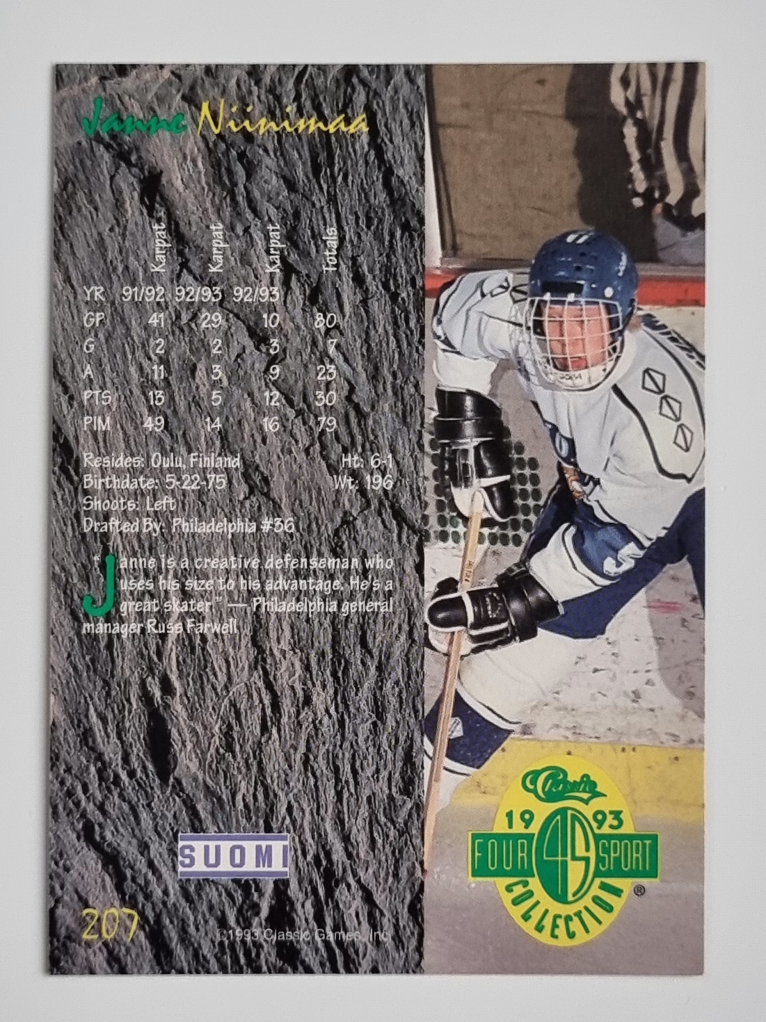 1993 Classic Four Sport #207 Janne Niinimaa1,00 € Rupture de stock Catégorie : Hockey Étiquette : Janne Niinimaa Description Description Set: 1993 Classic Four Sport Player: Niinimaa, Janne Sports: Hockey, Multisport Card Number: #207 Manufacturer: Classic/Scoreboard Brand: Classic Four Sport Produits similaires 2008-09 Collector’s Choice #72 Jason Arnott 1,00 € Ajouter au panier 1994-95 Donruss #31 Peter Bondra 1,00 € Ajouter au panier 1994-95 Donruss #230 Dave Ellett 1,00 € Ajouter au panier 1994-95 Donruss Ice Masters #2 Sergei Fedorov 3,00 € Ajouter au panier