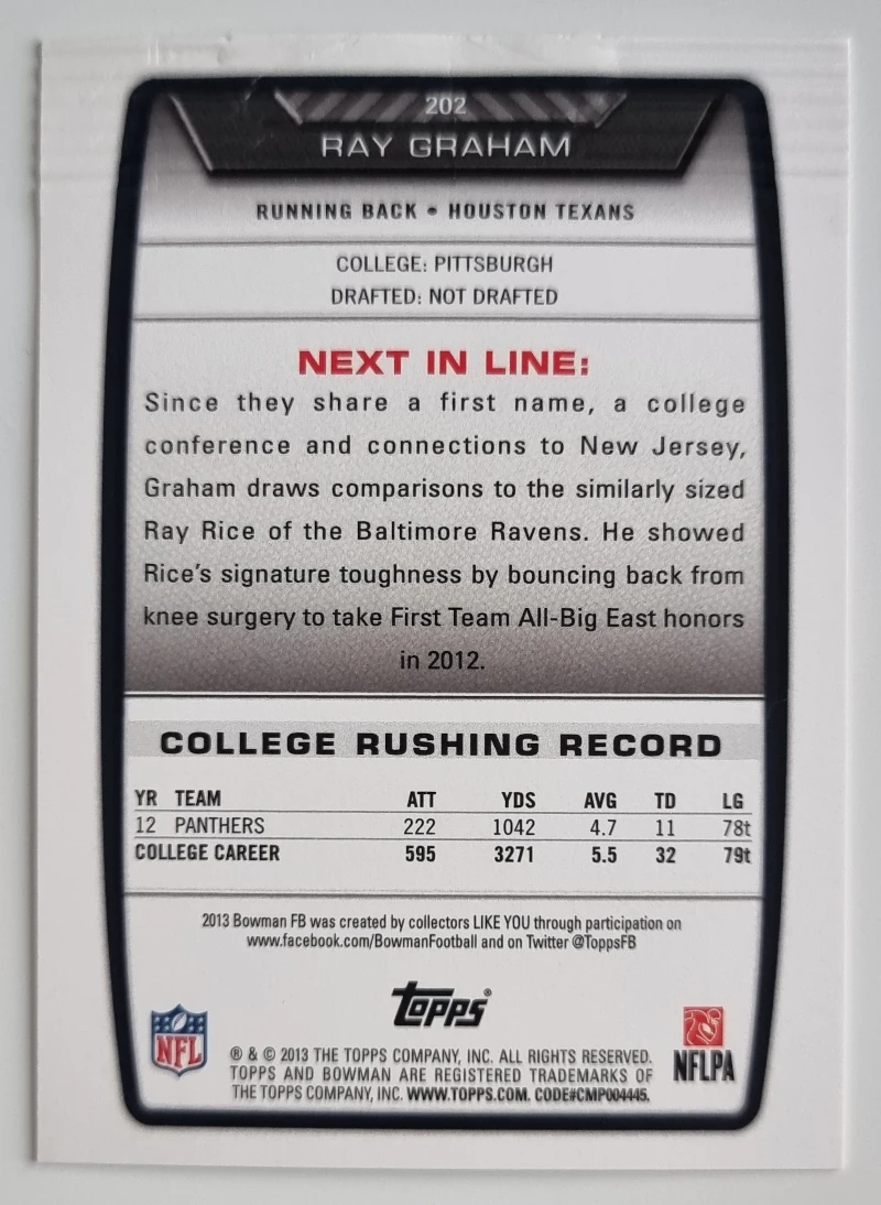 2014 Bowman #R79 Louis Nix III RC0,50 € Plus que 1 en stock - quantité de 2014 Bowman #R79 Louis Nix III RC + Ajouter au panier Catégorie : Texans Étiquette : Louis Nix Description Description Set: 2014 Bowman Player: Nix III, Louis Sport: Football Team: Houston Texans Attributes: RC Card Number: #R79 Manufacturer: Topps Co. Brand: Bowman Produits similaires 2024 Topps Resurgence Conductors #C2 CJ Stroud 3,00 € Ajouter au panier 2023 Topps Composite #192 J.J. Watt FINEST 2,00 € Ajouter au panier 2013 Bowman #202 Ray Graham RC 0,75 € Ajouter au panier 2011 Rookies and Stars #59 Arian Foster 0,75 € Ajouter au panier
