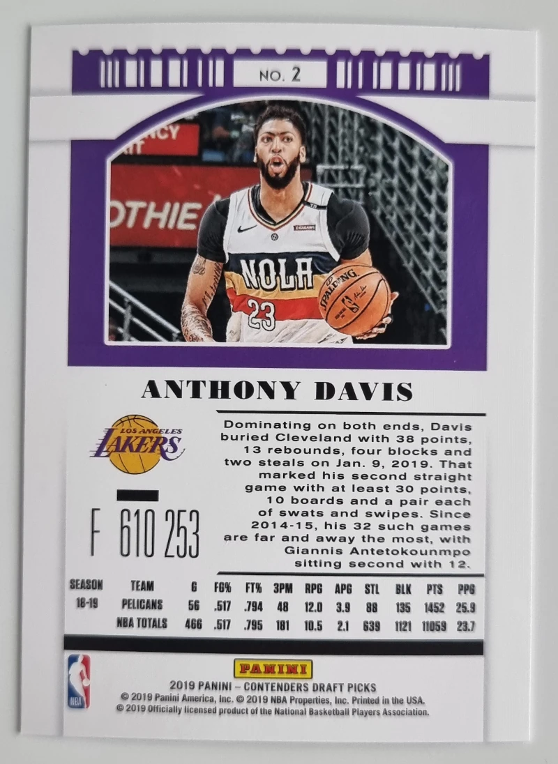 2018-19 Adrenalyn XL #C27 Anthony Davis/17-’18 All-Star5,00 € Plus que 1 en stock - quantité de 2018-19 Adrenalyn XL #C27 Anthony Davis/17-'18 All-Star + Ajouter au panier Catégorie : Pelicans Étiquette : Anthony Davis Description Description Set: 2018-19 Adrenalyn XL Player: Davis, Anthony Sport: Basketball Team: New Orleans Pelicans Card Number: #C27 Manufacturer: Panini Group Brand: Adrenalyn XL Produits similaires 2009-10 Adrenalyn XL Special #44 Emeka Okafor 1,50 € Ajouter au panier 2019-20 Panini Contenders Draft Picks Variations #2 Anthony Davis 2,00 € Ajouter au panier 2012-13 Absolute #85 Ryan Anderson 1,50 € Ajouter au panier 2023-24 Topps Cosmic Chrome #80 Trey Murphy III 2,00 € Ajouter au panier