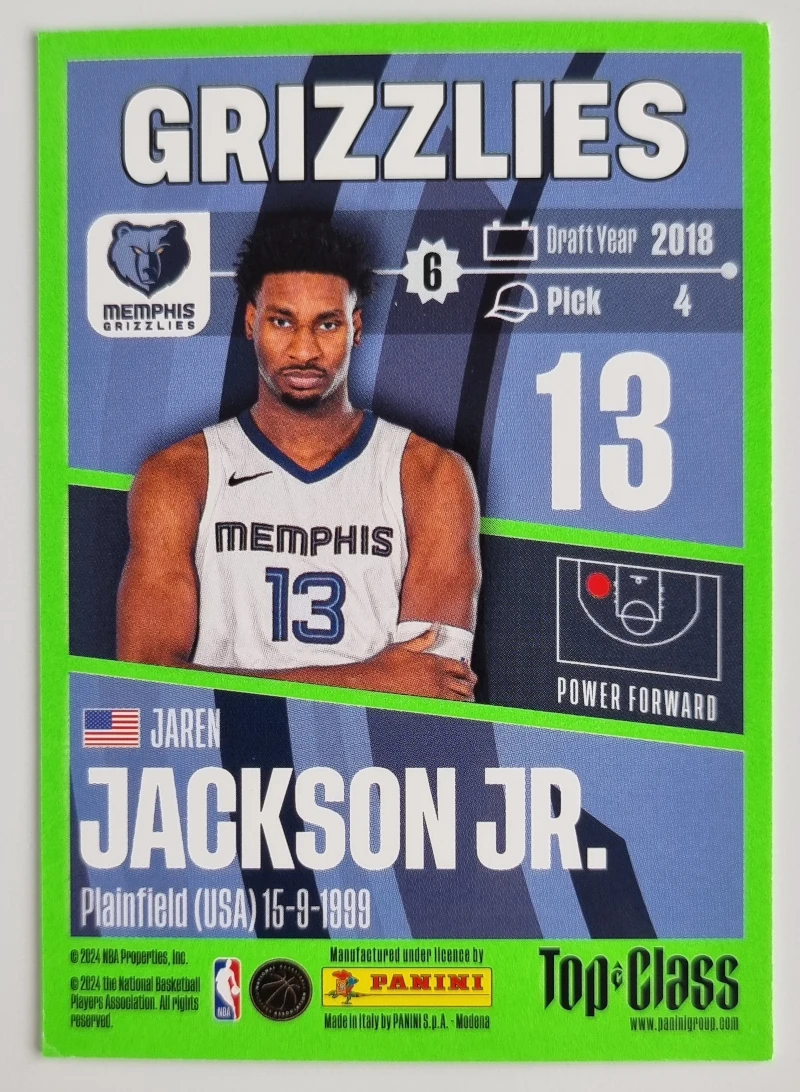 «2012-13 Prestige #27 Darren Collison» a été ajouté à votre panier. Voir le panier 2021-22 Panini Prizm #35 Jaren Jackson Jr.2,00 € Plus que 1 en stock - quantité de 2021-22 Panini Prizm #35 Jaren Jackson Jr. + Ajouter au panier Catégorie : Grizzlies Étiquette : Jaren Jackson Jr. Description Description Set: 2021-22 Panini Prizm Player: Jackson Jr., Jaren Sport: Basketball Team: Memphis Grizzlies Card Number: #35 Manufacturer: Panini Group Brand: Panini Prizm Produits similaires 2023-24 Topps Cosmic Chrome Refractors #190 GG Jackson 6,00 € Ajouter au panier 2023-24 Panini Mosaic Silver #228 GG Jackson II 15,00 € Ajouter au panier 2023-24 Panini Top Class #98 Jaren Jackson Jr. 2,00 € Ajouter au panier 2021-22 Panini Prizm Prizms Red White and Blue #215 Desmond Bane 5,00 € Ajouter au panier
