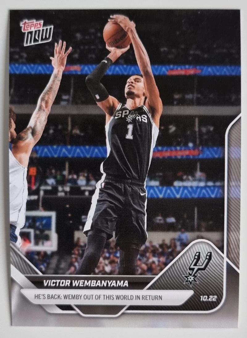 «2025 Topps Disney Wonder Hobby Box» a été ajouté à votre panier. Voir le panier 2025-26 NBA Topps Now #19 Victor Wembanyama13,00 € En stock - quantité de 2025-26 NBA Topps Now #19 Victor Wembanyama + Ajouter au panier Catégories : Basketball, Spurs Étiquette : Victor Wembanyama Description Description Set: 2025-26 NBA Topps Now Player: Victor Wembanyama Sport: Basketball Team: San Antonio Spurs Card Number: #19 Manufacturer: Topps Co. Brand: Topps Now Produits similaires 2012-13 Prestige #139 Delonte West 1,00 € Ajouter au panier 2012-13 Prestige #85 Chris Kaman 1,00 € Ajouter au panier 2023-24 Panini Top Class #67 Luka Doncic 2,00 € Ajouter au panier 2012-13 Prestige #108 Dirk Nowitzki 4,00 € Ajouter au panier